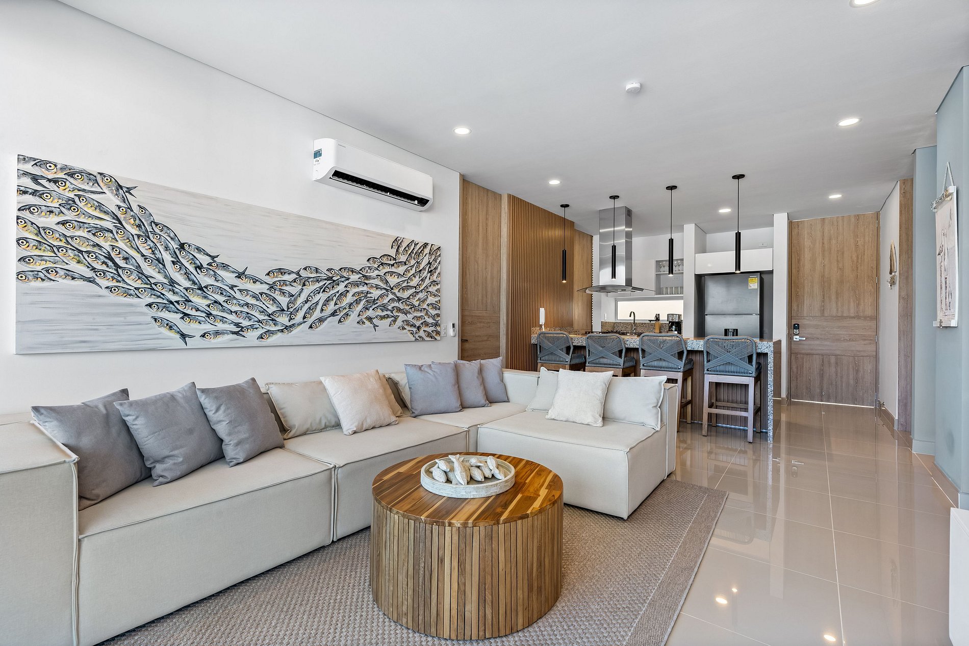 Welcome to Paradise! This luxurious and modern three-bedroom apartment is located near the sea in an exclusive condominium that has everything you need for an unforgettable vacation. Take a dip in the adult pool or have fun with your children in the children's pool while relaxing in the jacuzzis. Enjoy a private beach and a restaurant with delicious dishes and a bar with exclusive cocktails. In addition, you can organize barbecues in the BBQ area. This exclusive and quiet sector guarantees a private and luxurious stay. This is the perfect getaway!