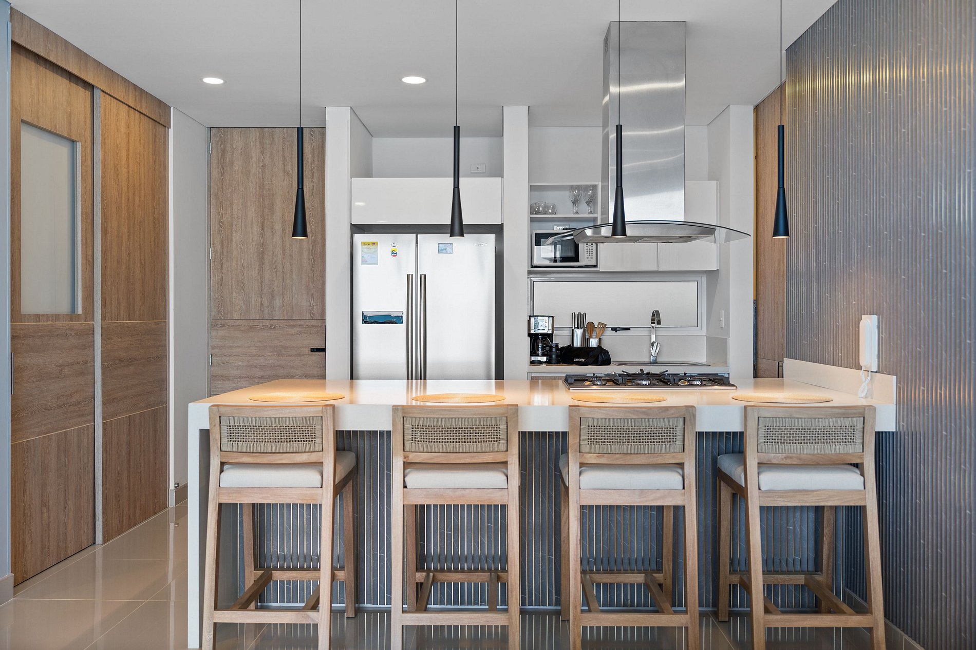 Welcome to paradise! This luxurious and modern three-bedroom apartment with a spectacular ocean view is located near the sea in an exclusive condominium that has everything you need for an unforgettable vacation. Dive into the adult pool or have fun with your children in the children's pool while relaxing in the jacuzzis. Enjoy a private beach and a restaurant with delicious dishes and a bar with exclusive cocktails. In addition, you can organize barbecues in the BBQ area. This exclusive and quiet area guarantees a private and luxurious stay. This is the perfect getaway!
