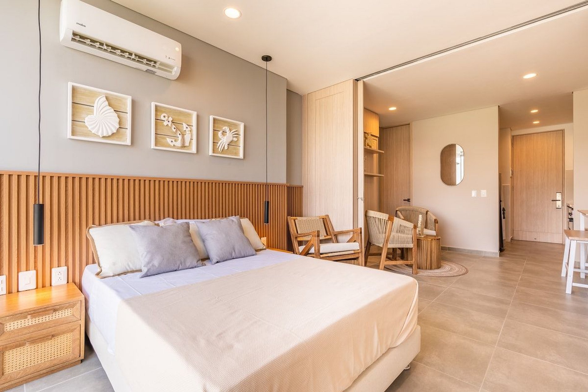 Descubre la elegancia moderna en nuestra suite premium en Playa Salguero, Santa Marta. Con capacidad para 4 huespedes, esta joya contemporánea ofrece vistas impresionantes al, diseño vanguardista y elegante junto a servicios exclusivos como piscinas con vista panoramica. Sumérgete en el lujo a solo pasos de la playa. ¡Tu escape de ensueño comienza aquí!