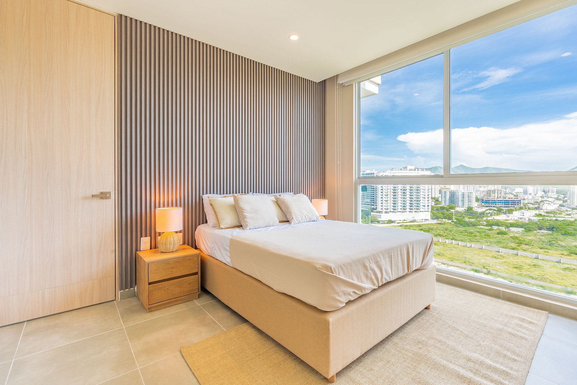 La sala es un espacio luminoso, donde la modernidad se fusiona con el confort para brindarte una experiencia única. Con una gran pantalla de TV, podrás disfrutar de una tarde de cine o una noche de juegos con tus amigos o familiares. La cocina de concepto abierto, equipada con electrodomésticos y utensilios de cocina de calidad, te invita a experimentar con sabores y aromas, mientras compartes momentos inolvidables con tus seres queridos en la barra de comedor. Las habitaciones, enmarcadas por una atmósfera sofisticada, están diseñadas para ofrecerte una estancia de ensueño. Con camas de calidad, ropa de cama suave, descansarás en un oasis de tranquilidad. Además, cada habitación cuenta con armarios empotrados para que puedas guardar tus pertenencias y tener todo a mano. Los dos baños del apartamento son verdaderas obras de arte, con acabados modernos y duchas amplias y relajantes. Los productos de baño de alta calidad y las toallas suaves te brindarán una experiencia de spa en la comodidad de tu hogar temporal. Nuestro apartamento cuenta también con un balcón donde podrás disfrutar del aire fresco y la vista panorámica de la ciudad, así como con aire acondicionado en cada habitacion, para que siempre te sientas cómodo. Ven y experimenta lo mejor en alojamiento moderno y exclusivo en nuestro increíble apartamento. ¡Te esperamos!