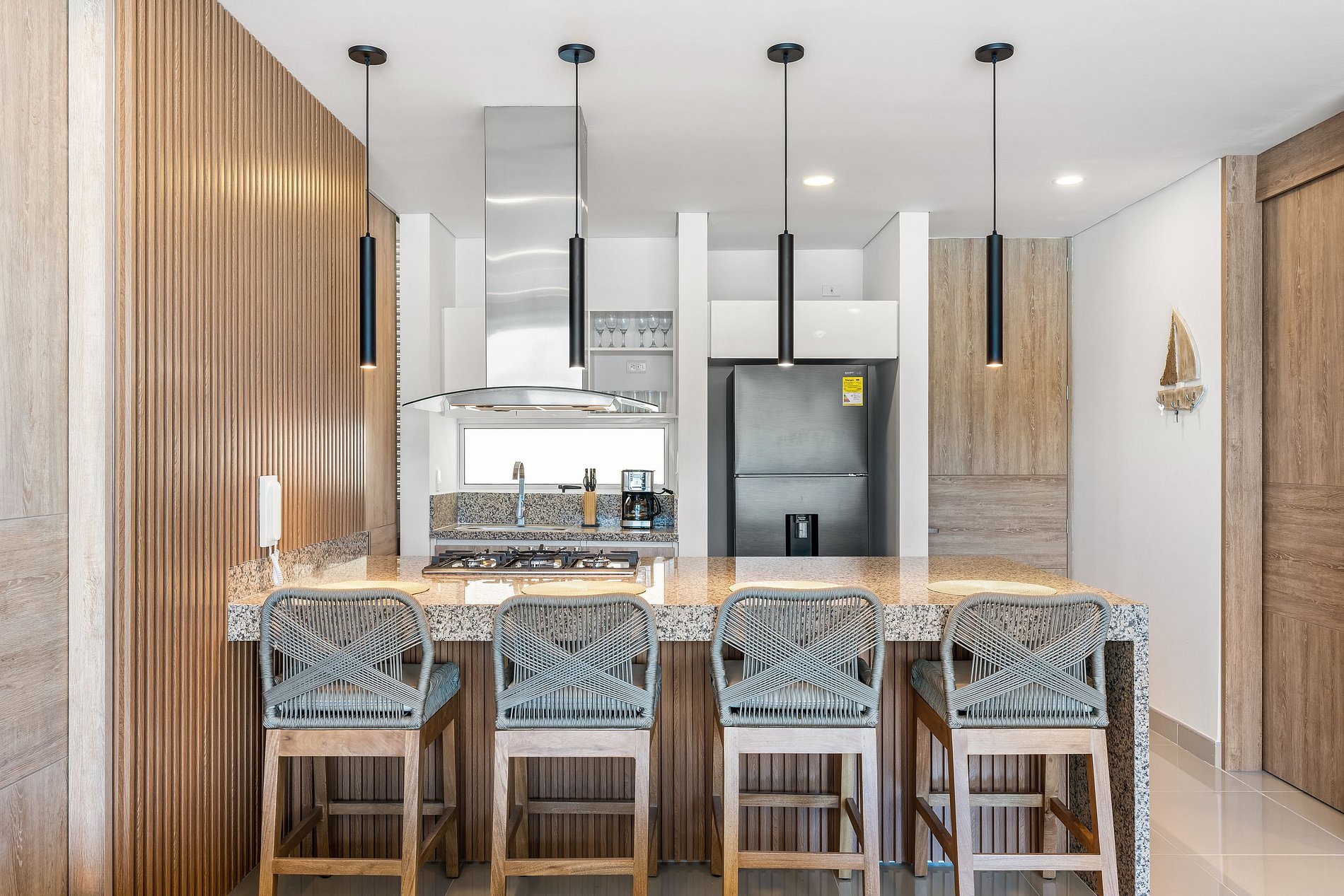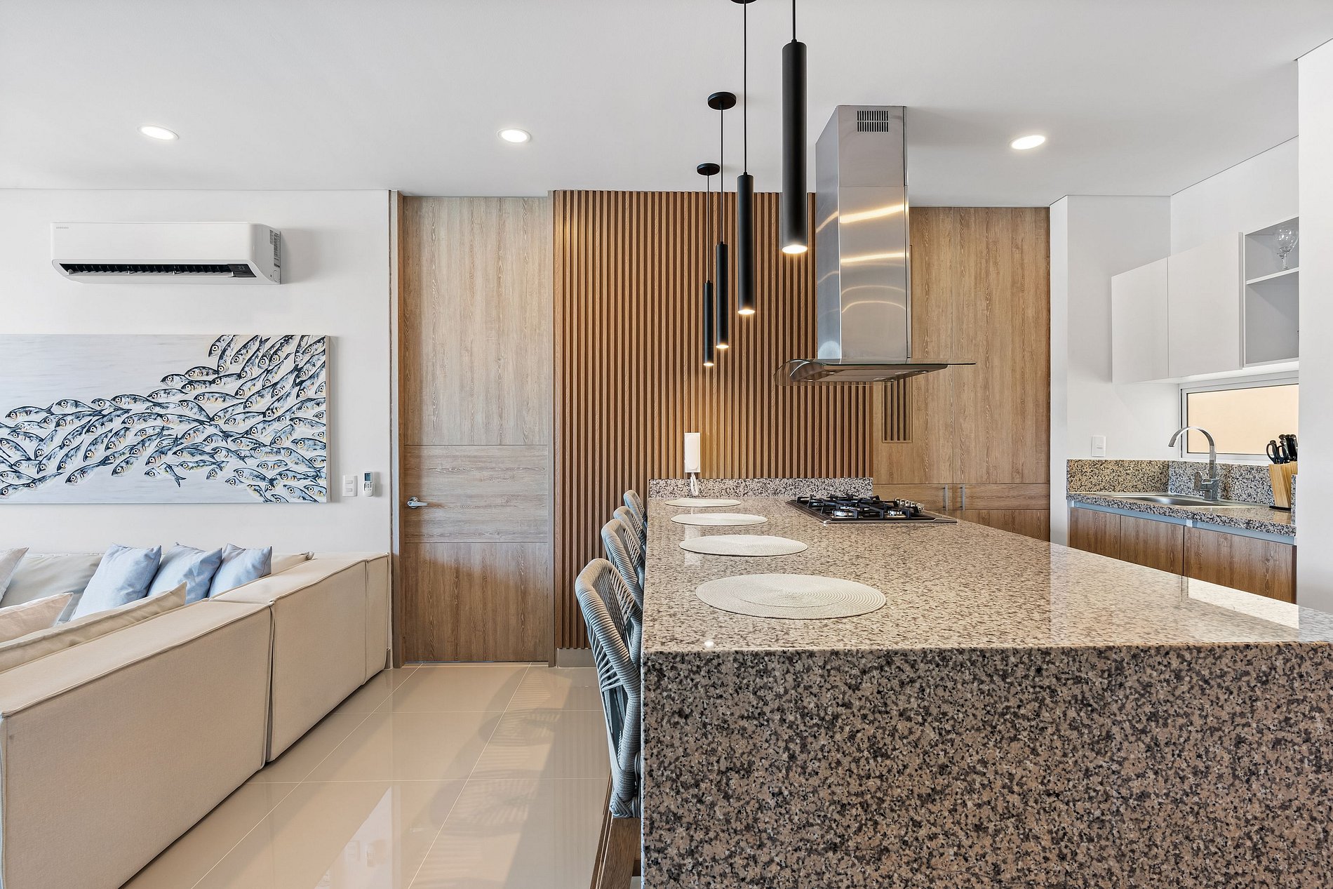 Elegante y lujoso, este apartamento cuenta con tres habitaciones exquisitamente decoradas. Cada detalle ha sido cuidadosamente seleccionado para crear un ambiente refinado y acogedor. Los huéspedes podrán disfrutar de una experiencia de alojamiento de alta gama en un entorno exclusivo.