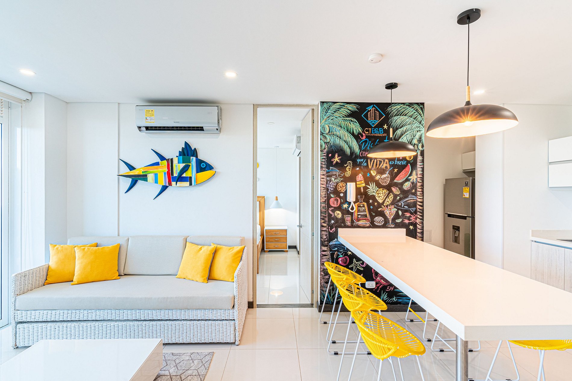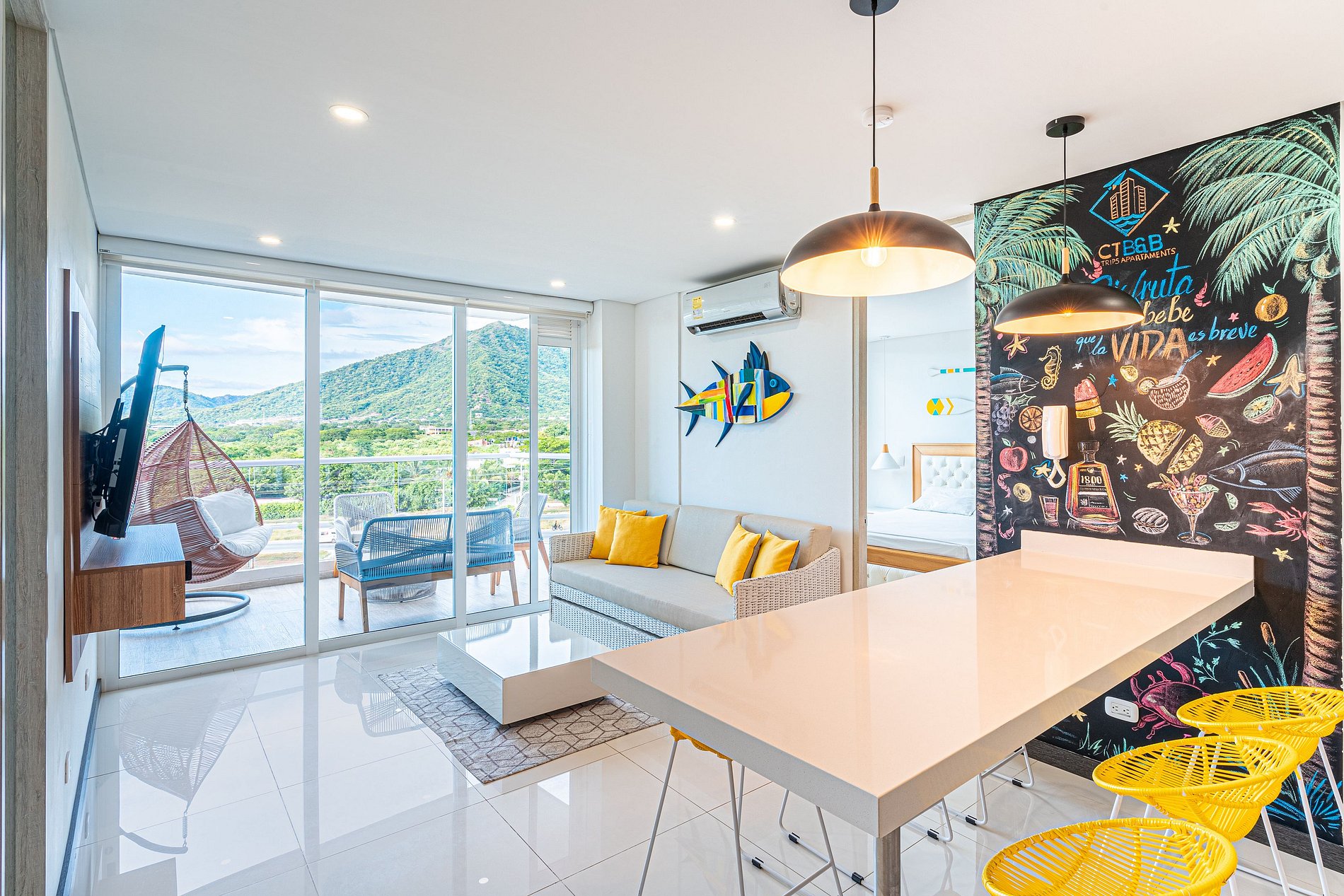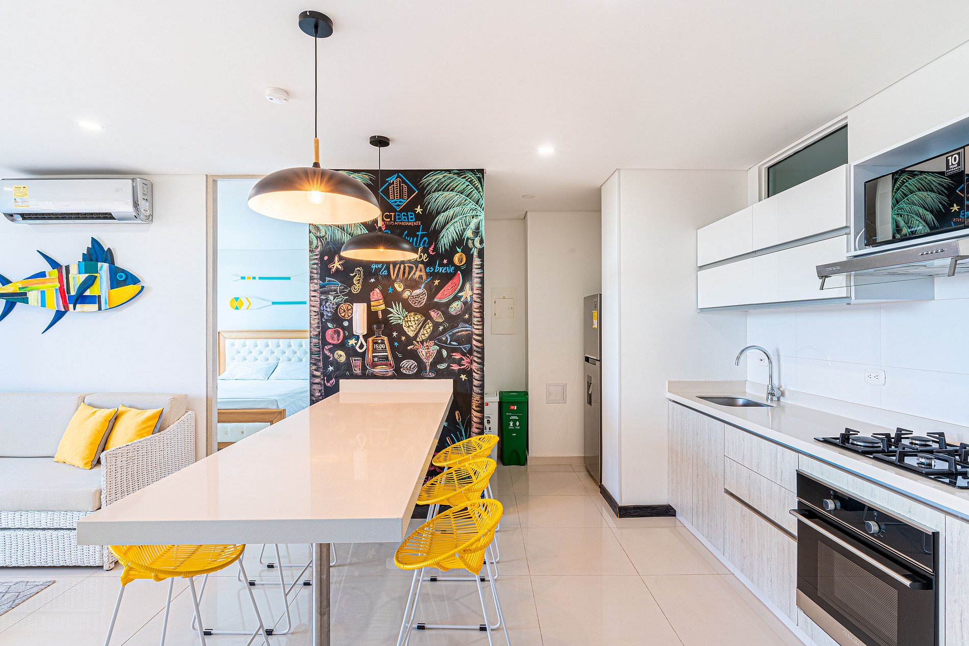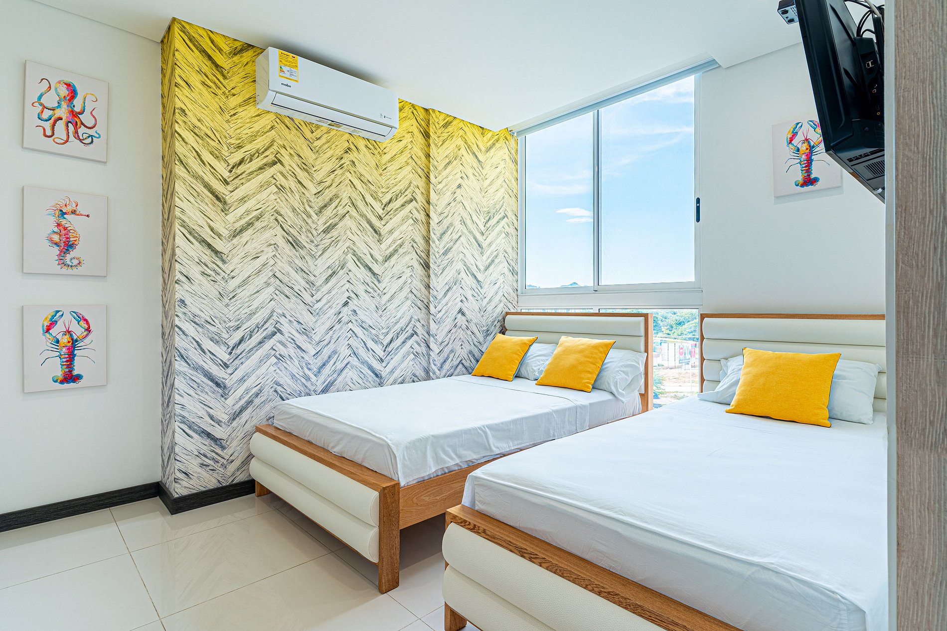 Espectacular apartamento de dos habitaciones y tres baños, situado en el sector mas exclusivo de Santa Marta "Bello Horizonte" sector en el cual se ubican grandes y exclusivos hoteles como IROTAMA, ZUANA, HILTON y MERCURE cerca unas de las mejores playas de Santa Marta como son las playas de Bello Horizonte. Totalmente nuevo este apartamento está inspirado en la calidez, colores y cultura del mar caribe; los colores vivos transmiten la alegría del caribe y su calidez junto a sus atardeceres.