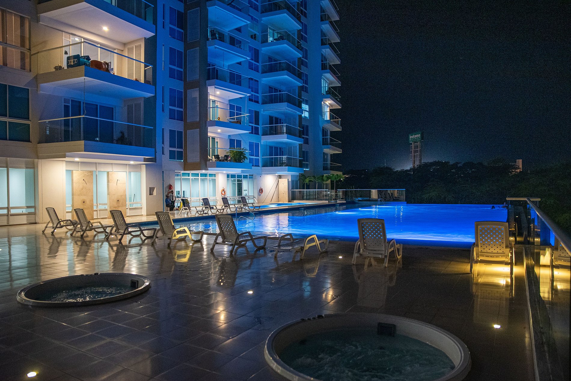 Condominio Ocean Club cuenta con dos piscinas de adultos y niños una de ellas con un espectacular borde infinito, cuenta con Jacuzzis en piscina como en el piso 16 con una vista espectacular, Sauna y turco para relajación, gimnasio y salón de juegos, salida trasera hacia la playa por la vía del hotel Irotama; la playa esta a 5min caminando.