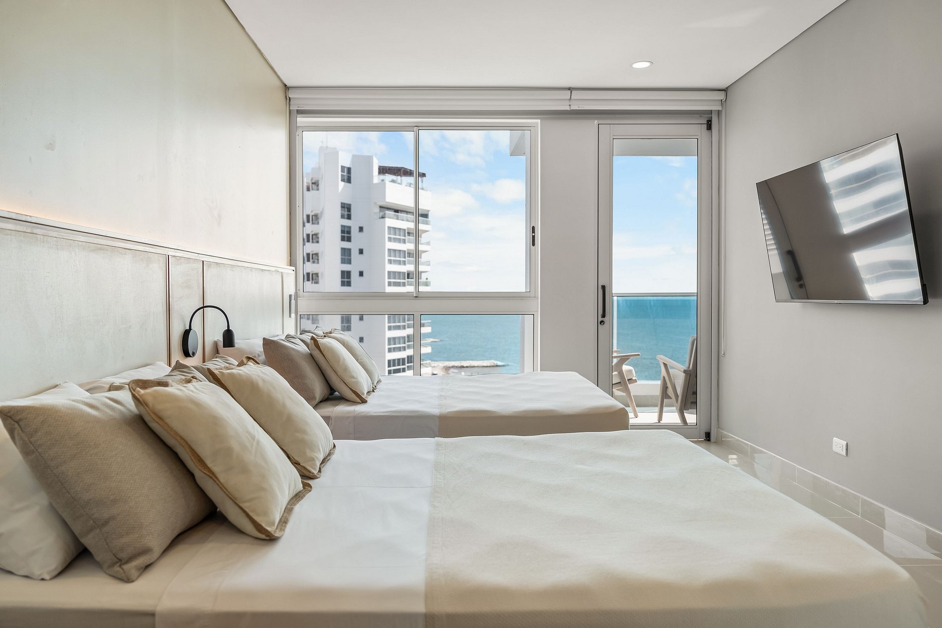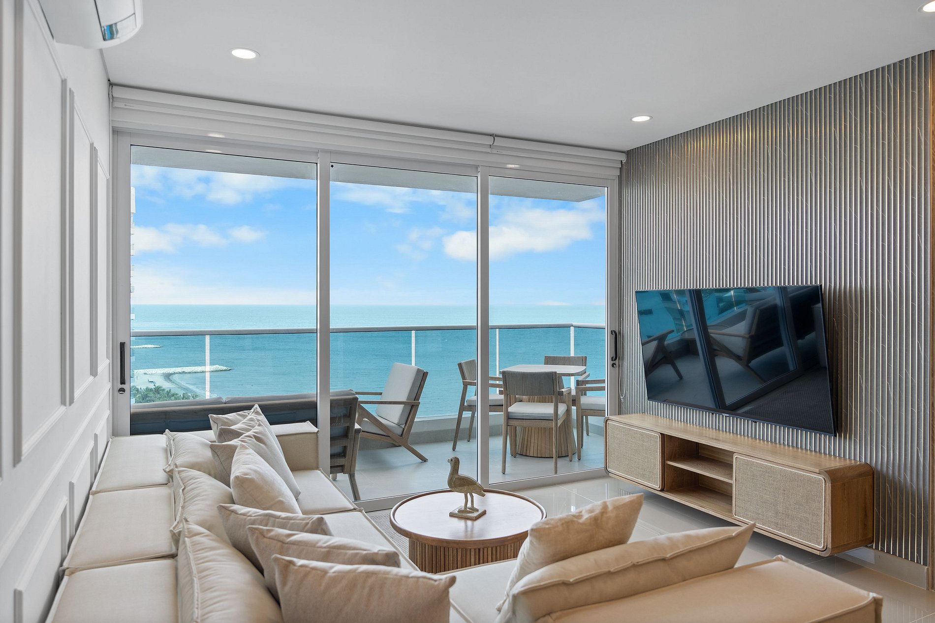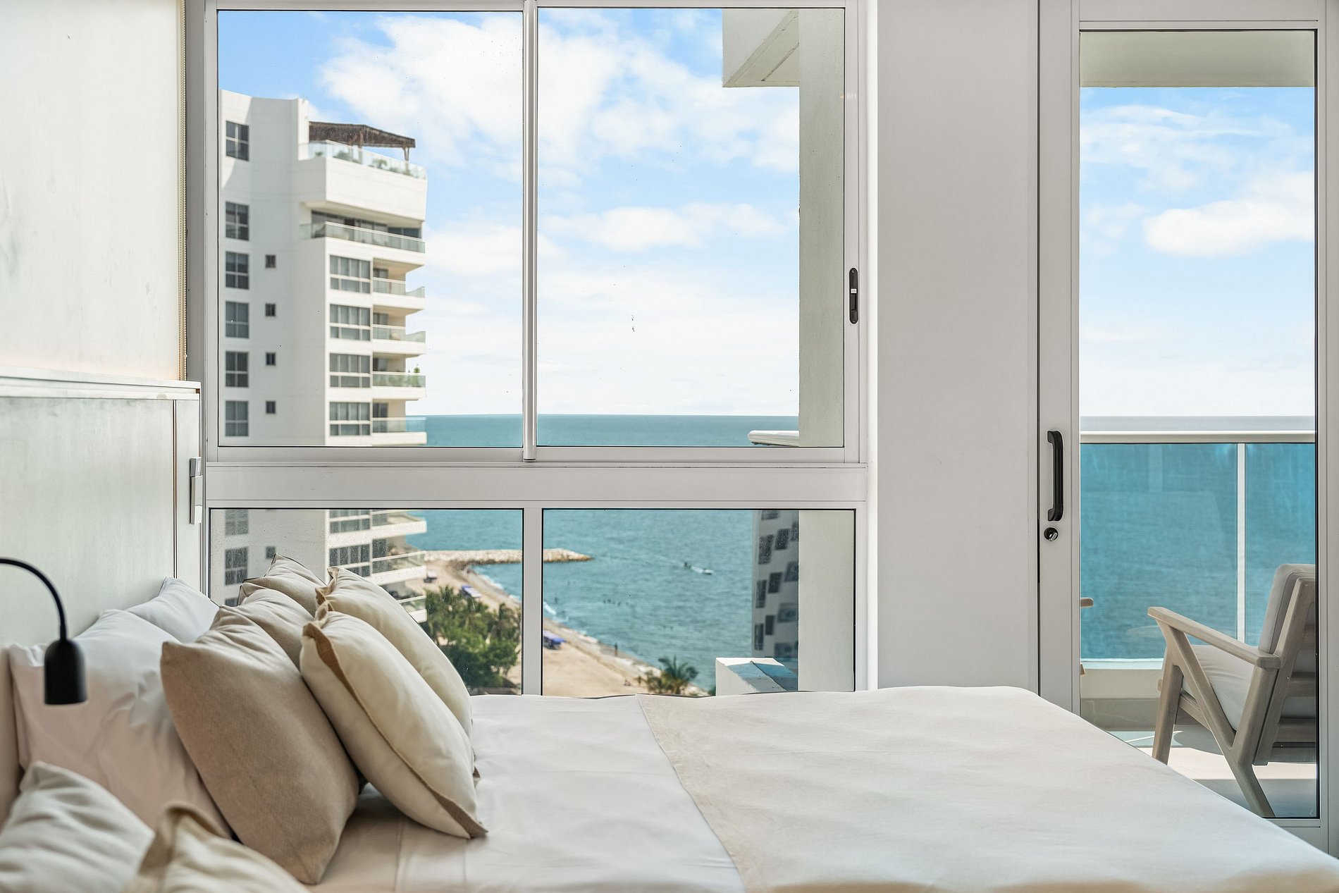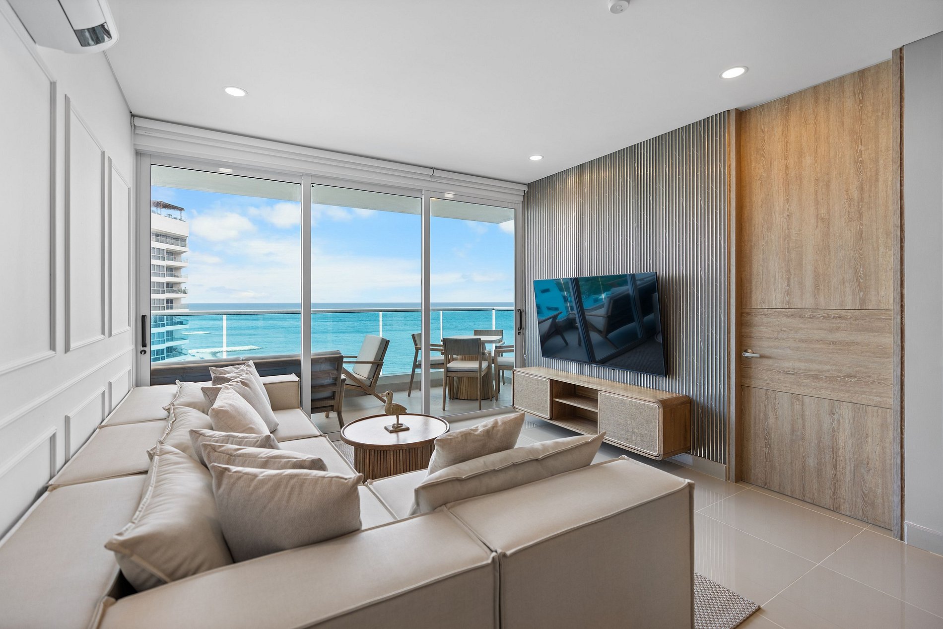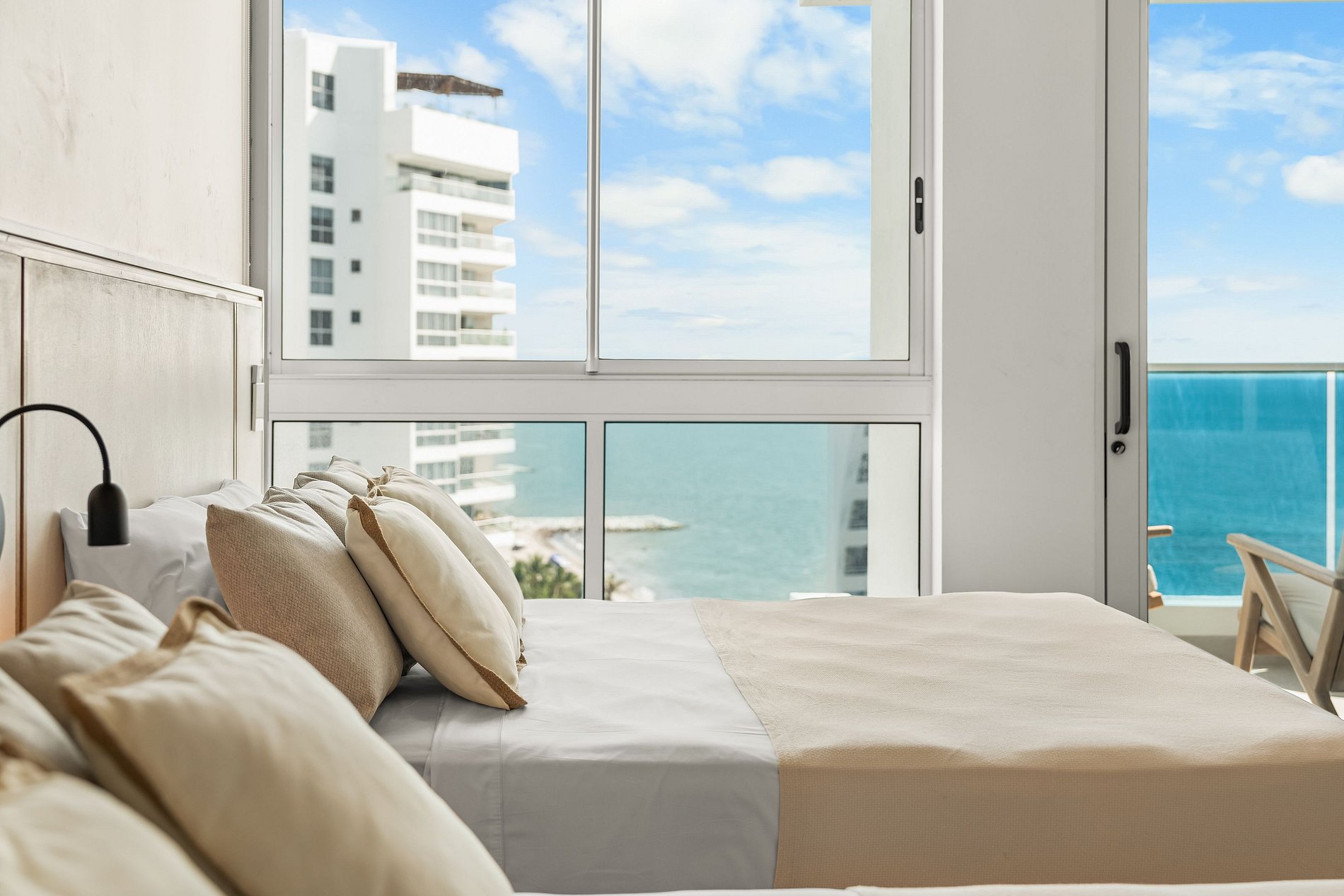 Elegante y lujoso, este apartamento cuenta con tres habitaciones exquisitamente decoradas. Cada detalle ha sido cuidadosamente seleccionado para crear un ambiente refinado y acogedor. Los huéspedes podrán disfrutar de una experiencia de alojamiento de alta gama en un entorno exclusivo. Su vista panorámica al mar enamorara a nuestros visitantes; preocúpate de no querer irte de este lugar mágico lleno de atardeceres inolvidables con tus seres amados.
