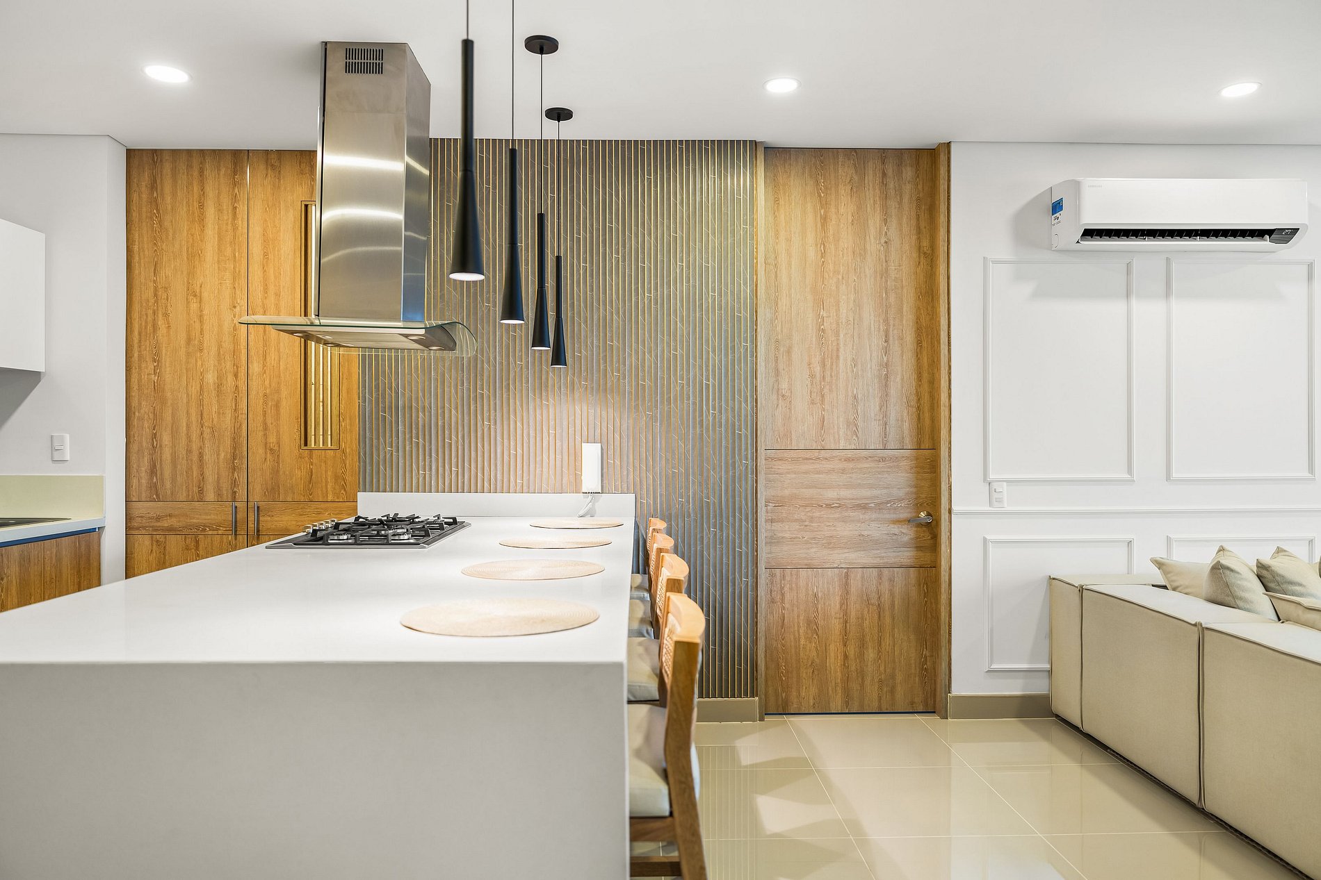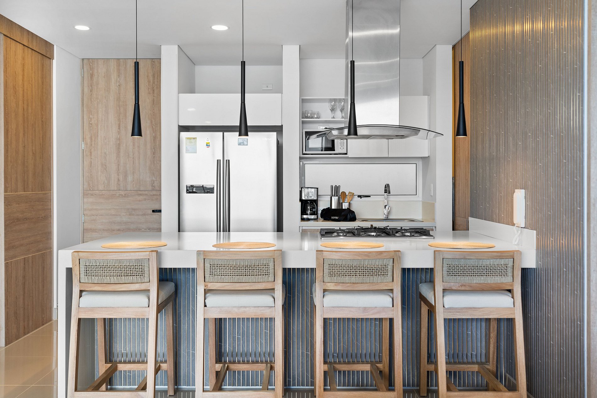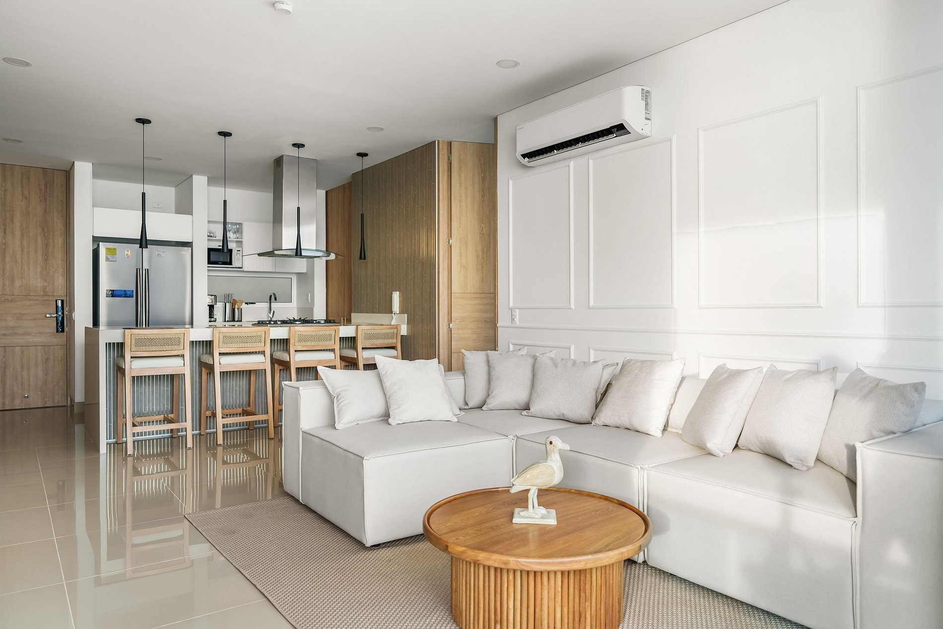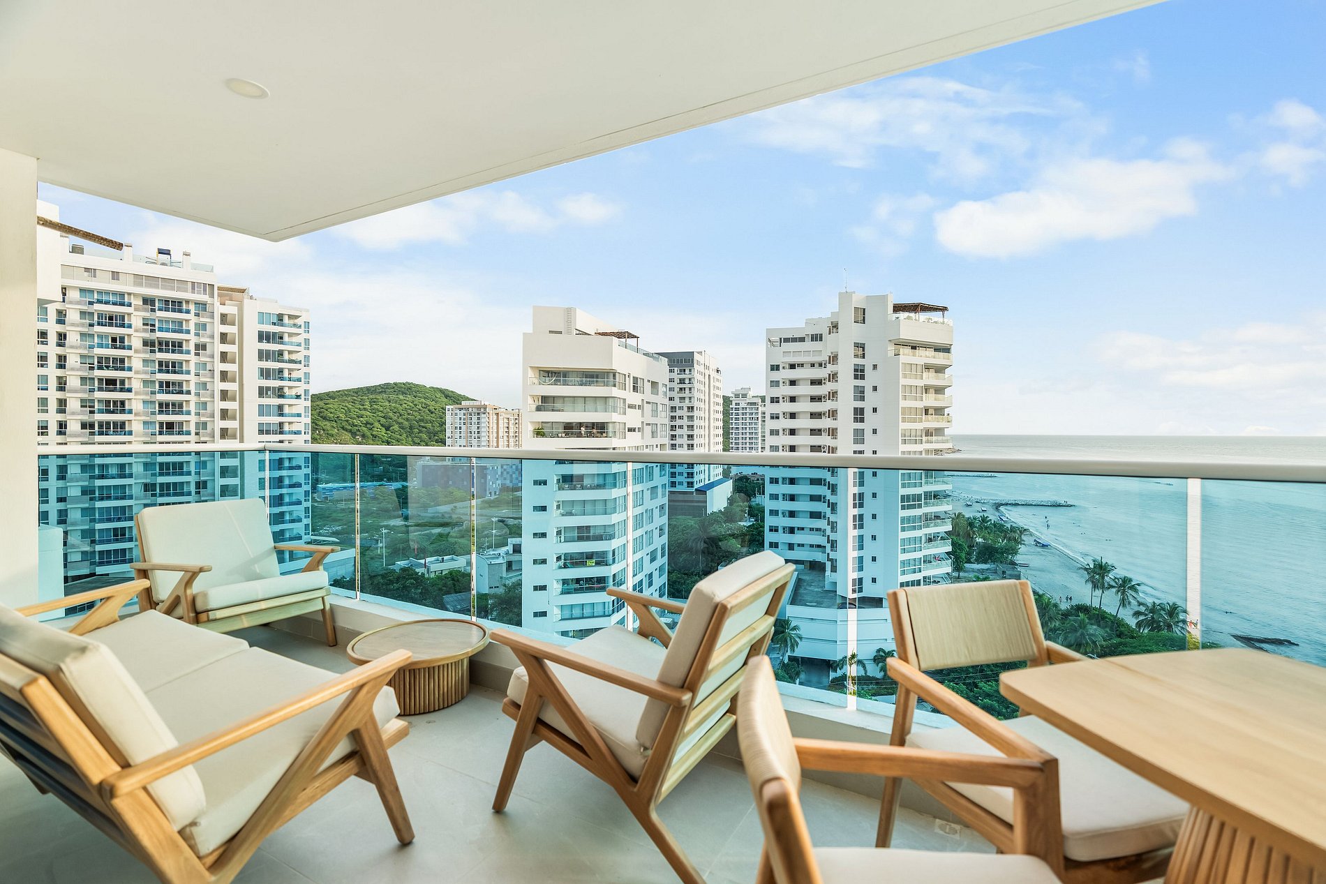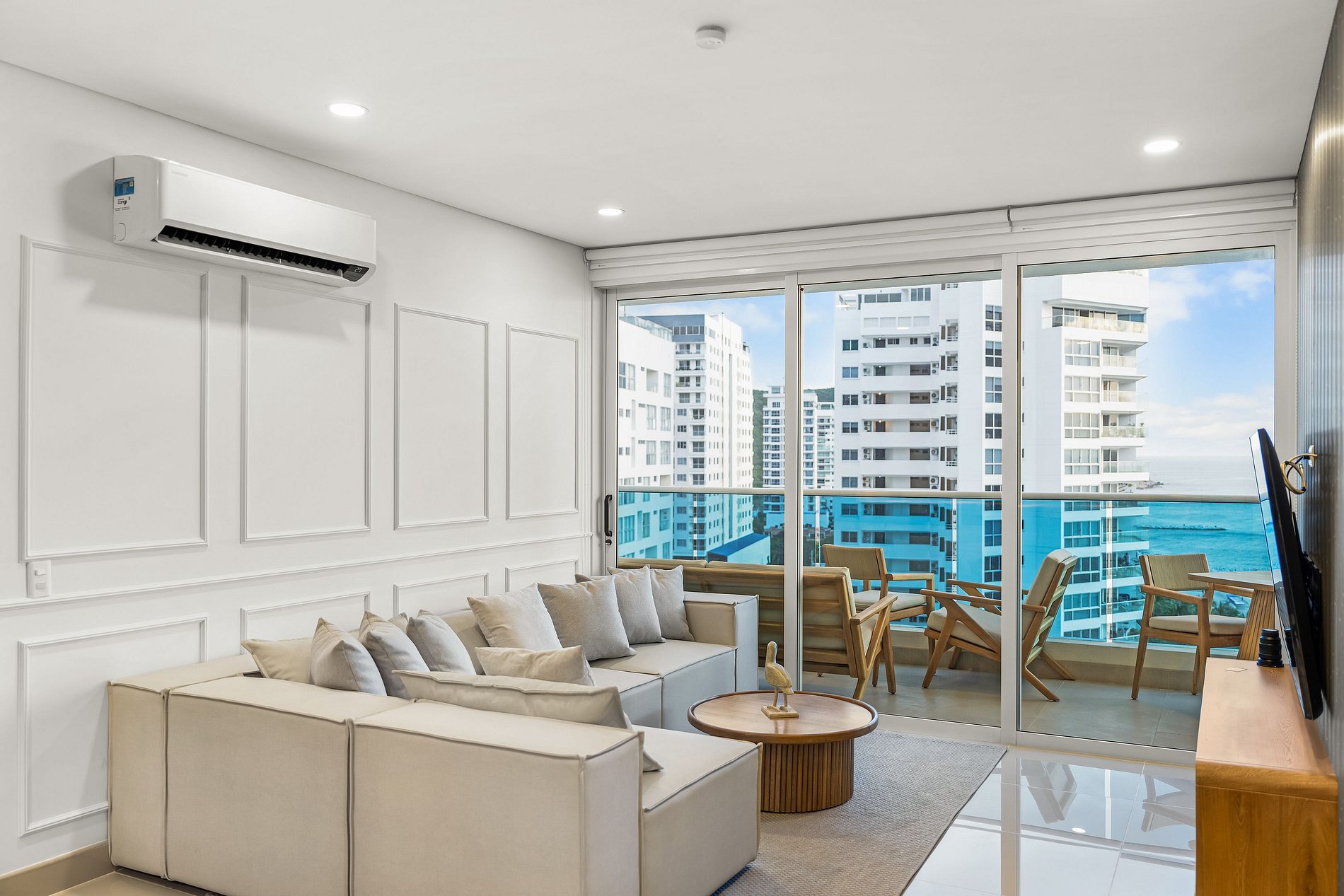 Elegante y lujoso, este apartamento cuenta con tres habitaciones exquisitamente decoradas. Cada detalle ha sido cuidadosamente seleccionado para crear un ambiente refinado y acogedor. Los huéspedes podrán disfrutar de una experiencia de alojamiento de alta gama en un entorno exclusivo. Su vista panorámica al mar enamorara a nuestros visitantes; preocúpate de no querer irte de este lugar mágico lleno de atardeceres inolvidables con tus seres amados.