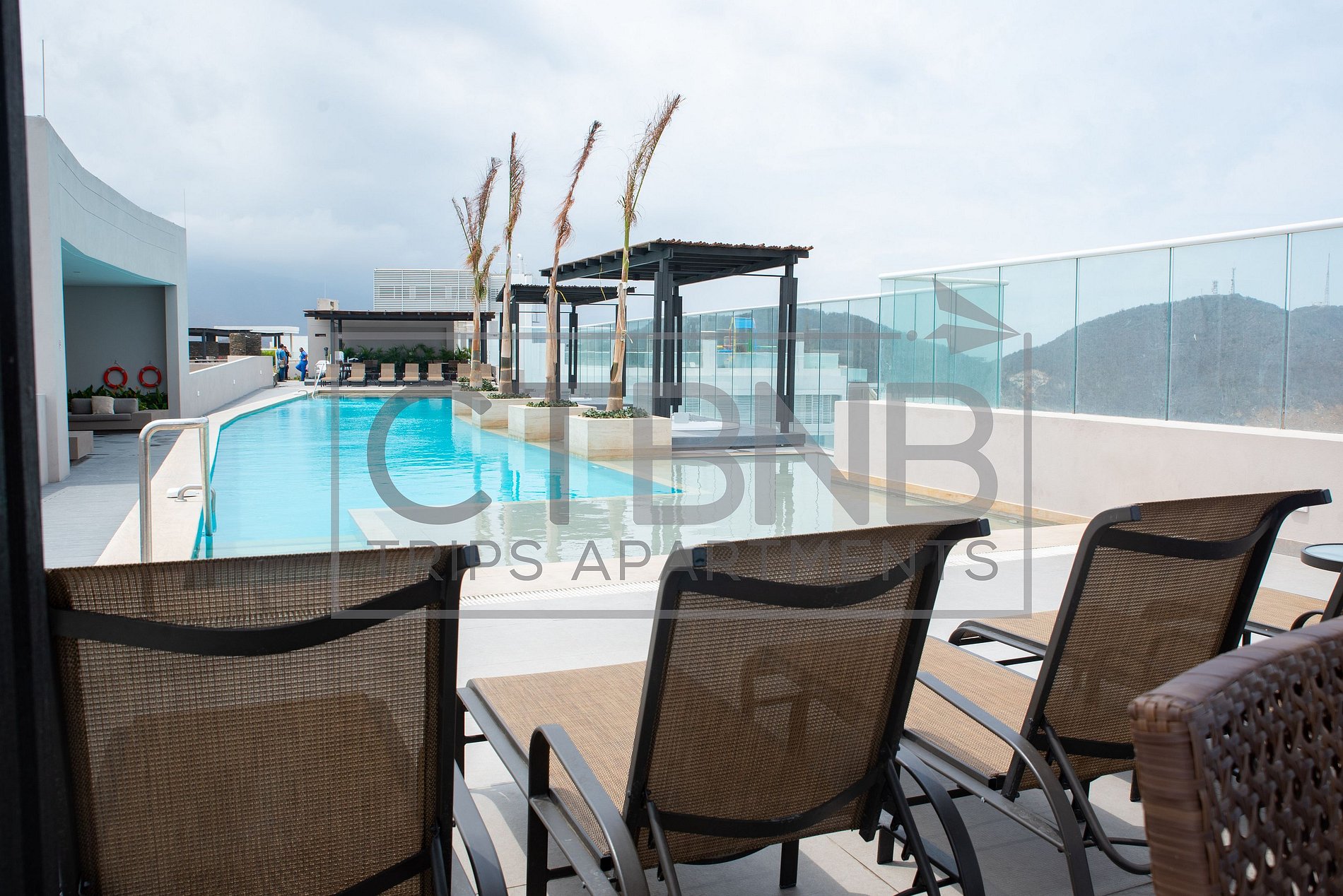 Bienvenidos a nuestro apartamento de tres habitaciones con vista al mar, disponible para alquilar en AIRBNB. Ubicado en un condominio exclusivo, nuestro hogar ofrece a nuestros huéspedes acceso a piscinas de ensueño, jacuzzis relajantes y una playa privada a pocos pasos de distancia. El apartamento está amoblado con un estilo moderno y colorido, con una gran sala de estar y comedor que se abre a una terraza con vista al mar. Cada habitación tiene vista al mar y aire acondicionado, lo que garantiza la comodidad de nuestros huéspedes. La cocina está completamente equipada con todo lo necesario para preparar comidas deliciosas. Además, los huéspedes pueden disfrutar de servicios adicionales, como wifi gratuito, televisión por cable y estacionamiento privado. ¡Ven y disfruta de una experiencia única en nuestro apartamento frente al mar!
