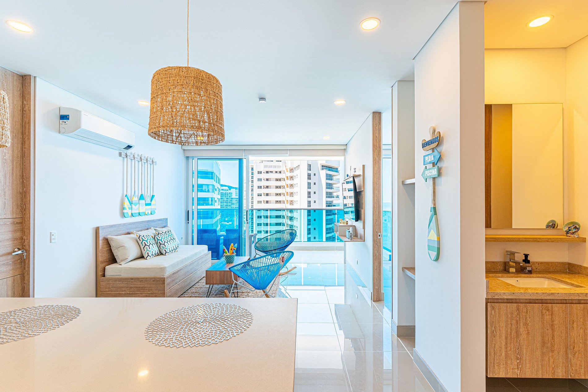 Bienvenidos a nuestro apartamento de tres habitaciones con vista al mar, disponible para alquilar en AIRBNB. Ubicado en un condominio exclusivo, nuestro hogar ofrece a nuestros huéspedes acceso a piscinas de ensueño, jacuzzis relajantes y una playa privada a pocos pasos de distancia. El apartamento está amoblado con un estilo moderno y colorido, con una gran sala de estar y comedor que se abre a una terraza con vista al mar. Cada habitación tiene vista al mar y aire acondicionado, lo que garantiza la comodidad de nuestros huéspedes. La cocina está completamente equipada con todo lo necesario para preparar comidas deliciosas. Además, los huéspedes pueden disfrutar de servicios adicionales, como wifi gratuito, televisión por cable y estacionamiento privado. ¡Ven y disfruta de una experiencia única en nuestro apartamento frente al mar!
