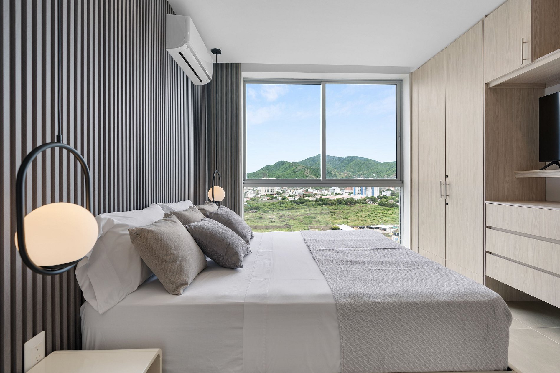 Descubre la elegancia moderna en nuestra suite premium en Playa Salguero, Santa Marta. Con capacidad para 4 huespedes, esta joya contemporánea ofrece vistas impresionantes al, diseño vanguardista y elegante junto a servicios exclusivos como piscinas con vista panoramica. Sumérgete en el lujo a solo pasos de la playa. ¡Tu escape de ensueño comienza aquí!