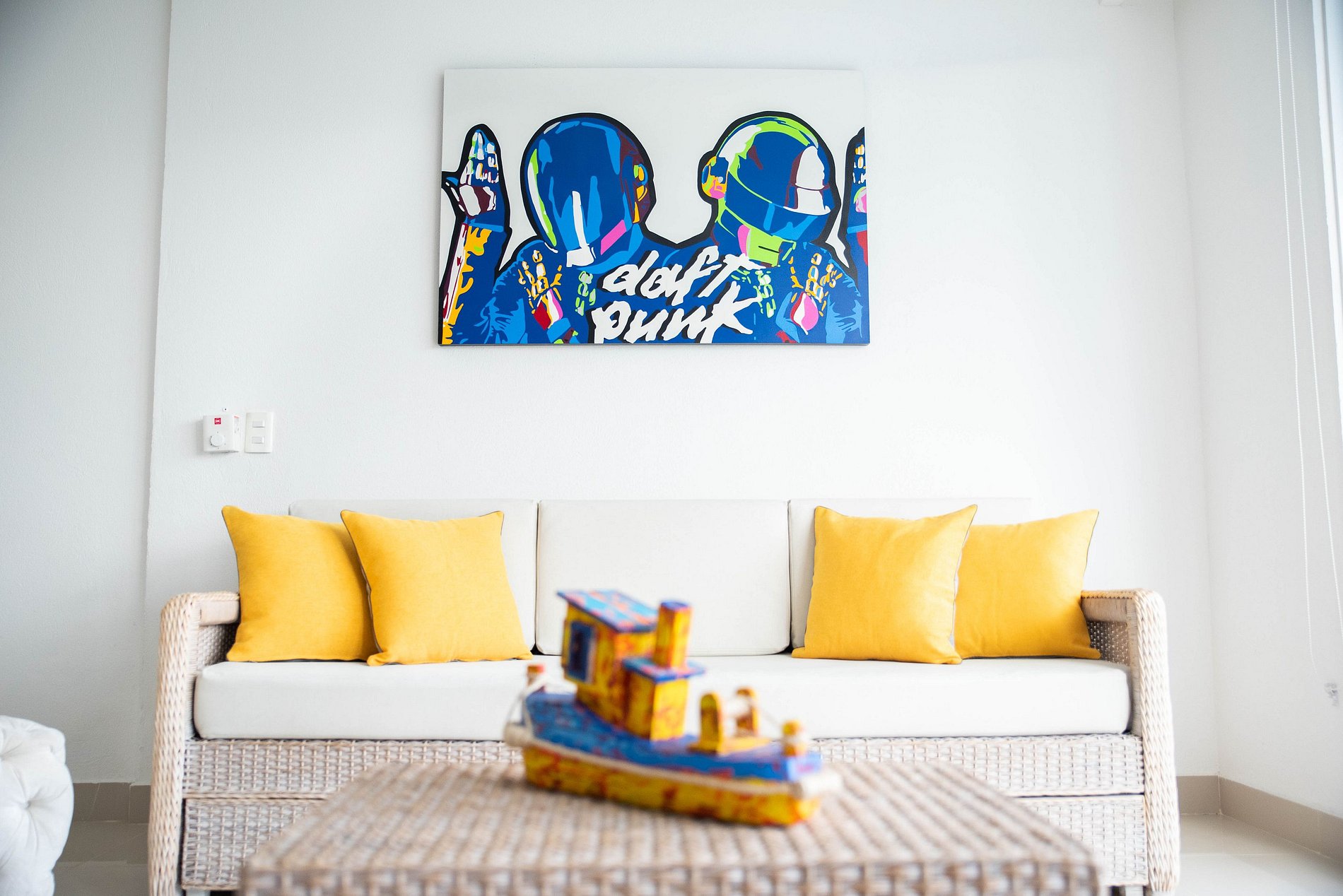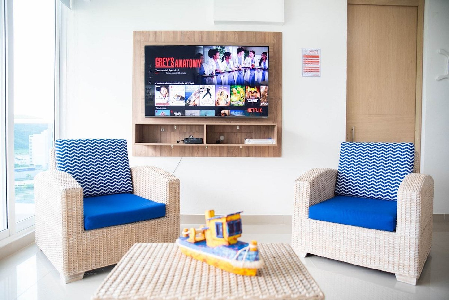 El apartamento está inspirado en el mar caribe, todos azules que inspiran la tranquilidad de sus aguas y denotan un ambiente caribe típico de la costa. Hemos trabajado fuertemente para estar a la altura de las exigencias de Bioseguridad para todos nuestros huéspedes es por esto que contamos con un equipo profesional de personas las cuales en conjunto a procedimientos altamente rigurosos y sofisticados de limpieza ofrecemos un servicio altamente seguro.