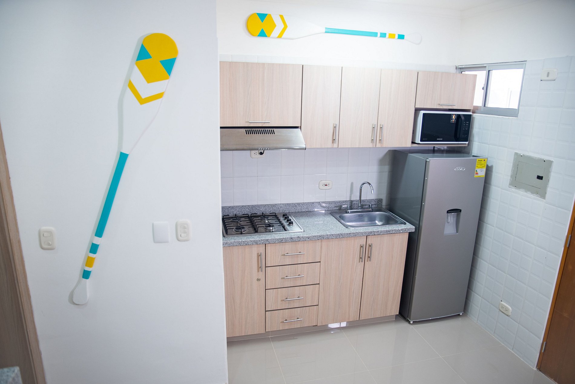 Esta propiedad cuenta con 33m2 de espacio, el apartamento cuenta con una habitación independiente, sala comedor y cocina equipada. La acomodación de esta propiedad es para máximo 4 personas distribuidas así: Una cama Queen un camarote de dos camas sencillas, así mismo se sitúa en el corazón turístico por excelencia de Santa Marta, el Rodadero centro. El edificio cuenta con ascensor.